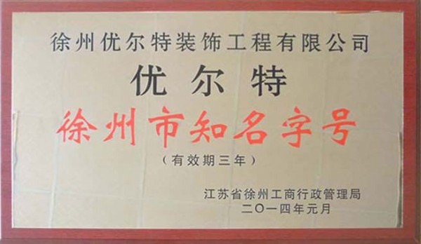 • 熱烈祝賀優爾特裝飾獲得徐州家裝行業首家擁有“知名商標”、“知名字號”、“市放心消費先進單位”、“市放心消費示范單位”、“省放心消費先進單位”